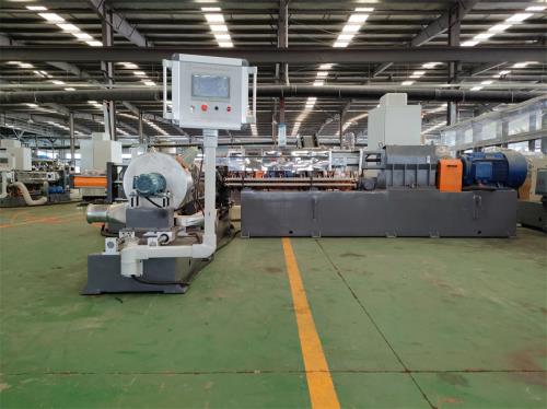 PVC电缆料造粒机使用双阶式造粒机组。第一阶为GLS型高速同向双螺杆挤出机,第二阶为GLD系列单螺杆挤出机,构成双阶式复合机组,基本结构形式:特点:将双螺杆高速,强混炼与单螺杆低速,低温,弱剪切特性相结合,扬长避短,是当今热敏性,剪敏性物料高效配混改性的首选机型。适用于:PVC电缆料造粒机,鞋底料,透明瓶料,医用料,低烟无卤或无卤阻燃电缆料,EVA屏蔽料,PE/EVA炭黑母粒等各种交联电缆料,辐照交联电缆料的生产。此套设备具有下列优点:优良的混炼效果及温度控制容易。使用较小的电力和占地面积。原料的混炼及制粒流程是全自动(自动连线控制),减少人员操作。此套设备不需要特殊的操作技术,生产高品质的产品而操作简单。具有优良的安全性。温度控制容易,因此减少原料的损害及变质。